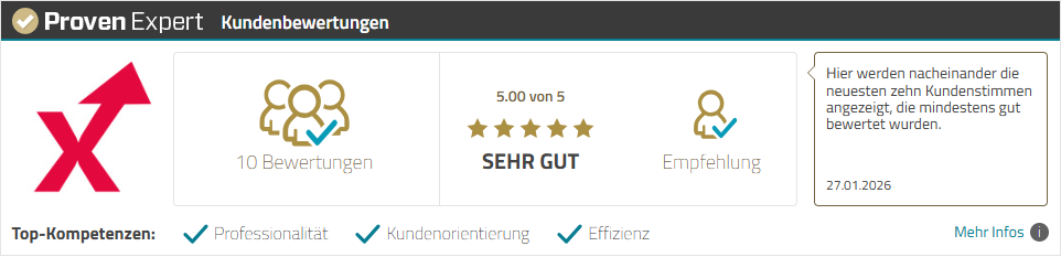 Unsere Arbeit spricht für sich. Lesen Sie die Bewertungen unserer Kunden auf vertrauenswürdigen Plattformen.